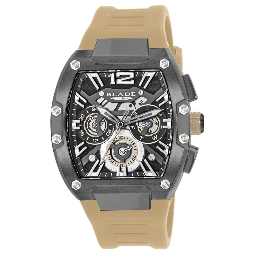 BLADE Magnifique Desert 3652G5AGD – Falco Collection – Square – 43mm PVD Grey Stainless Steel Case – Hardened Mineral Glass – Grey/Beige Dial – Japan Multifunction Quartz Movement – 27.5mm Aqua Silicone Strap – Tang Buckle – 5ATM Water Resistant – Men's Watch – 3 Years Warranty|