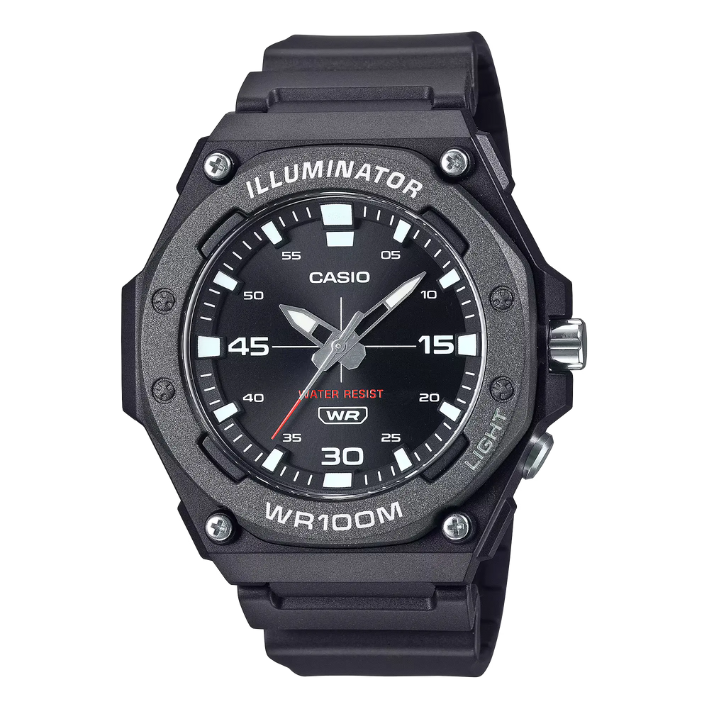 The wide case, measuring 46.1 mm, features high-visibility bar index marks to ensure an easy read. The sunray dial is a striking complement to the bezel’s metallic finish, coming together in a design that is bold and tough.