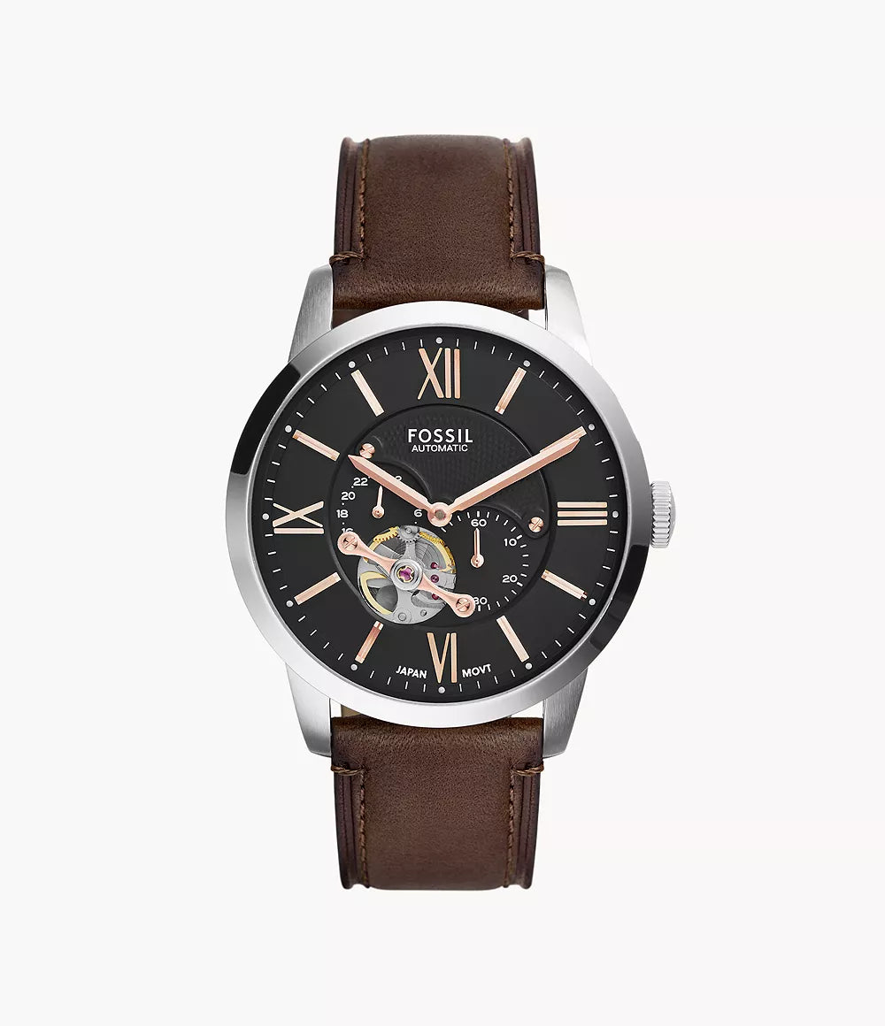 From desk to dinner, daily commute to jet-set journey, think of Townsman as his best-dressed essential. Crafted with an exposed automatic movement, it's a sleek, pulled-together style that never takes itself too seriously.